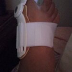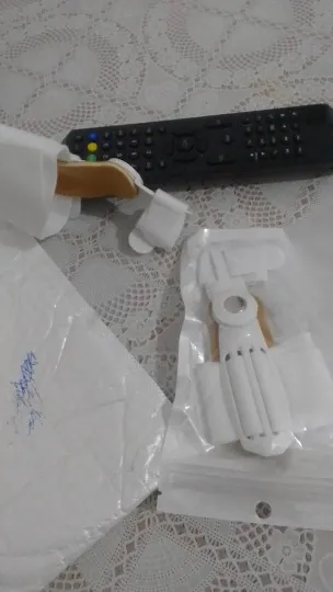 Delivered pretty quickly. Very satisfied. Comfortable for the leg relieves pain. Very good finger corrector.