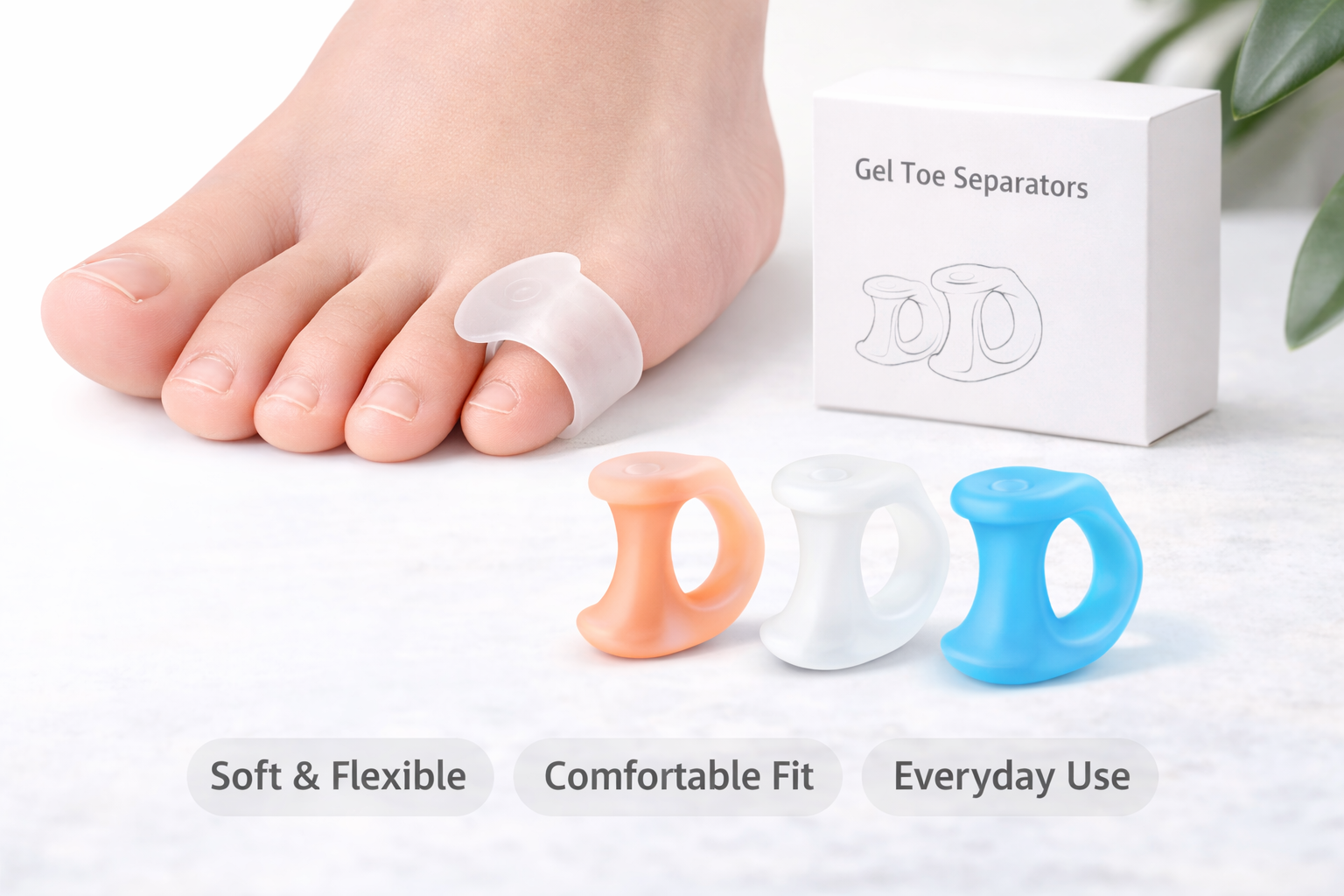Crafted from soft, skin-friendly silicone, these separators are designed to feel smooth, flexible, and comfortable throughout your day — whether you're wearing sneakers, relaxing at home, or heading out.